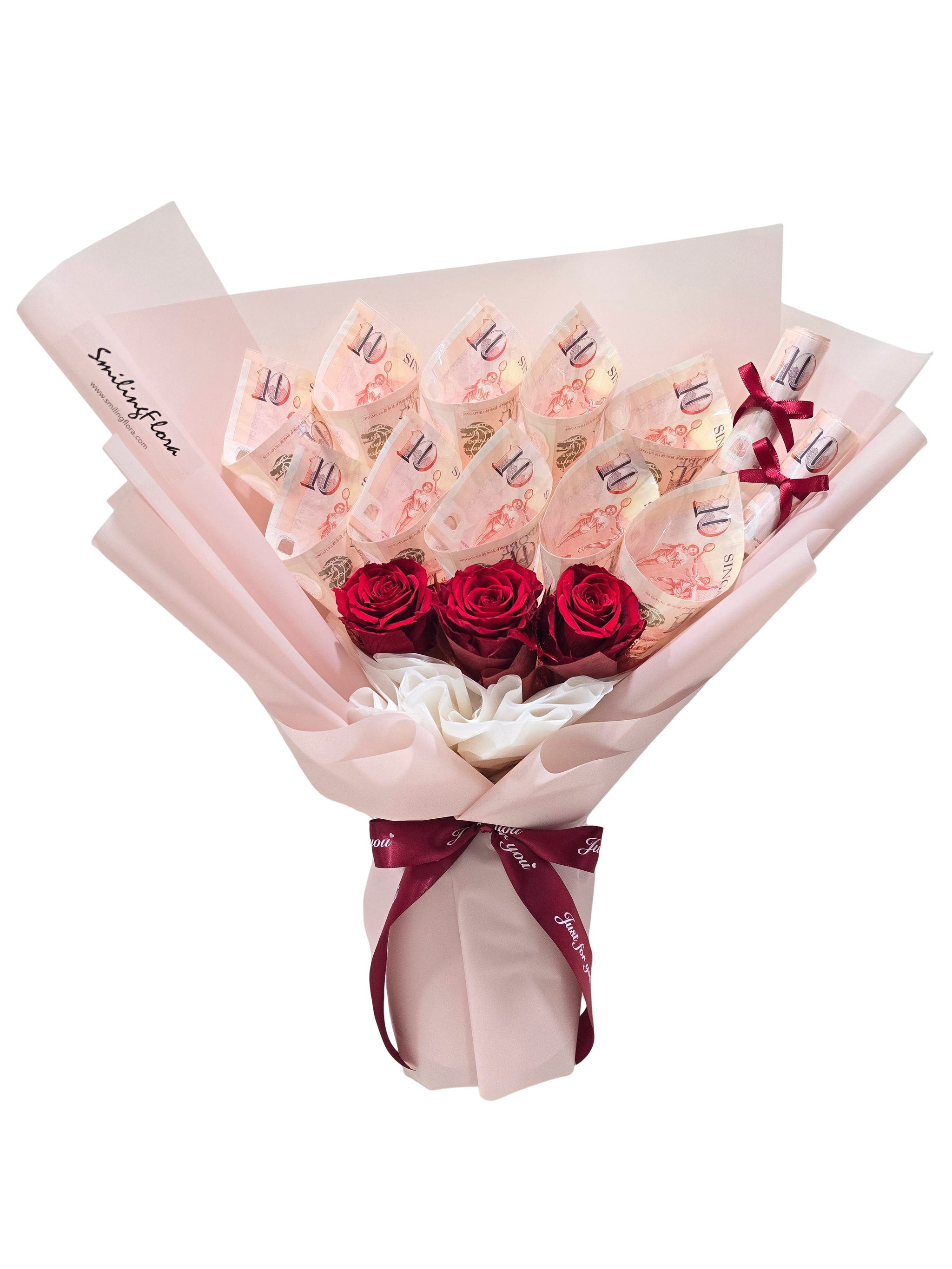 Money Bouquet with Preserved Roses